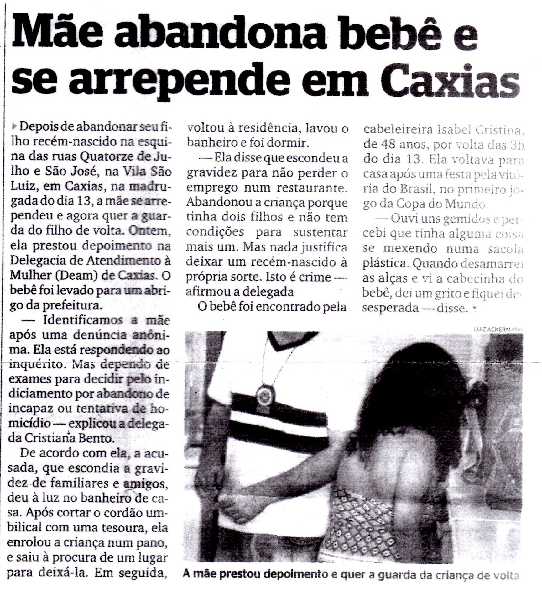 Zeitungsbericht über Clara - erschienen in der Tageszeitung von Duque de Caxias (Juni 2014)