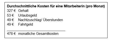 → Fünf Angestellte müssen selbst finanziert werden (Kosten s. unten), da der Staat seine