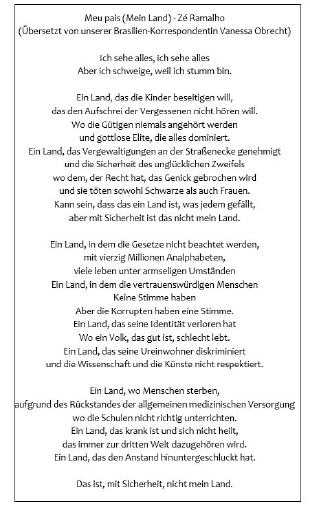 Die Wahrnehmung unserer Freunde im Kinderheim spiegelt sich auch in einem aktuellen Song des brasilianischen Musikers, Zé Ramalho, wieder.
